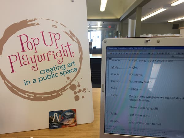 Pop Up Playwright is about creating art in public spaces. More specifically for me it is about writing political plays in public spaces.
